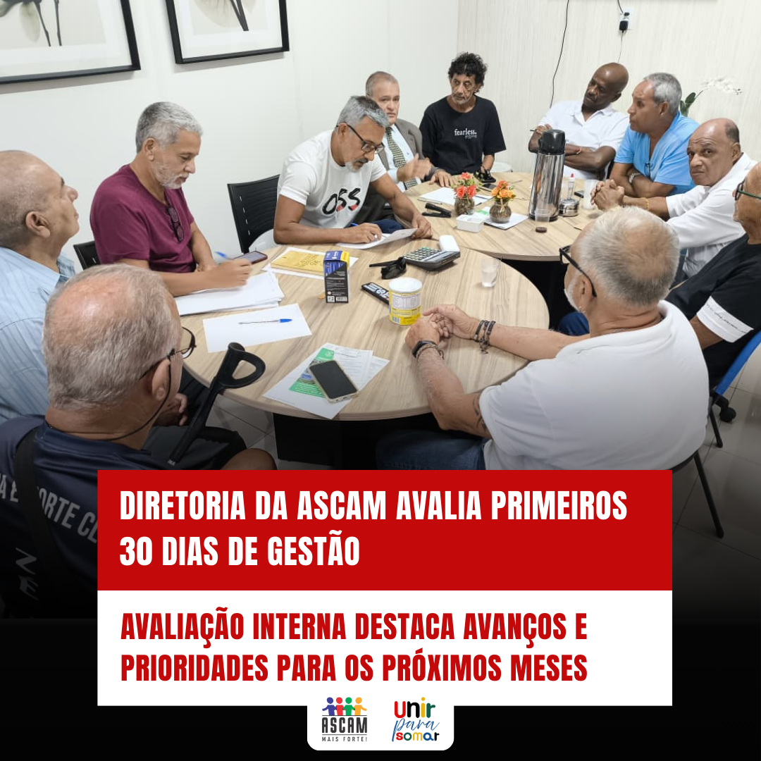 Avaliação interna destaca avanços e prioridades para os próximos meses. Na sexta-feira (27), a Diretoria da ASCAM se reuniu para avaliar os primeiros 30 dias de […]